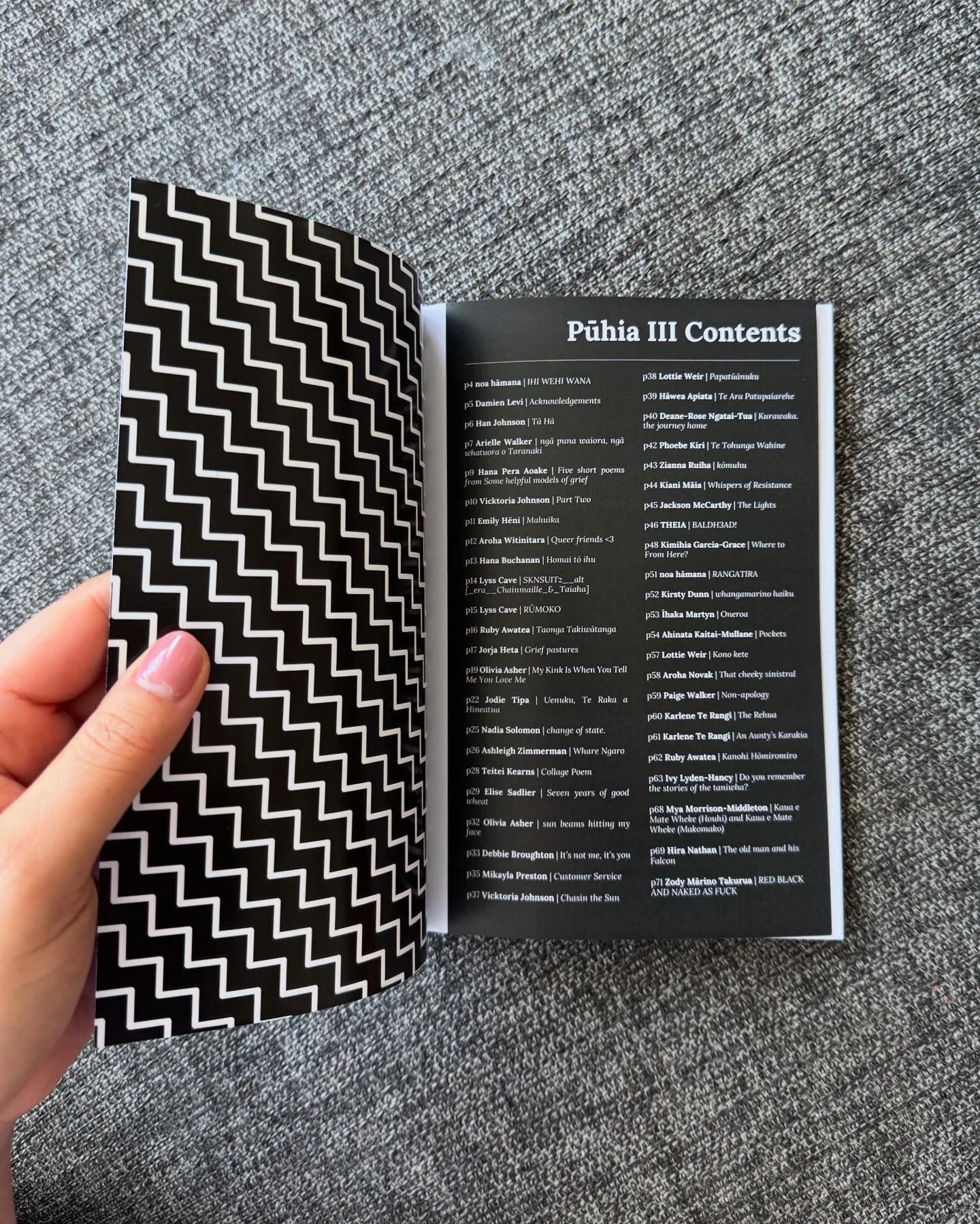 Pūhia is an independent journal of Māori creative writing and visual art created and edited by Jordan Tricklebank (Ngāti Maniapoto, Ngāti Mahuta), the curator behind the Māori Literature Blog. Pūhia III brings together poetry, prose (narrative or reflective writing), and artwork from emerging and established Māori creators — a space where our stories are held with care.